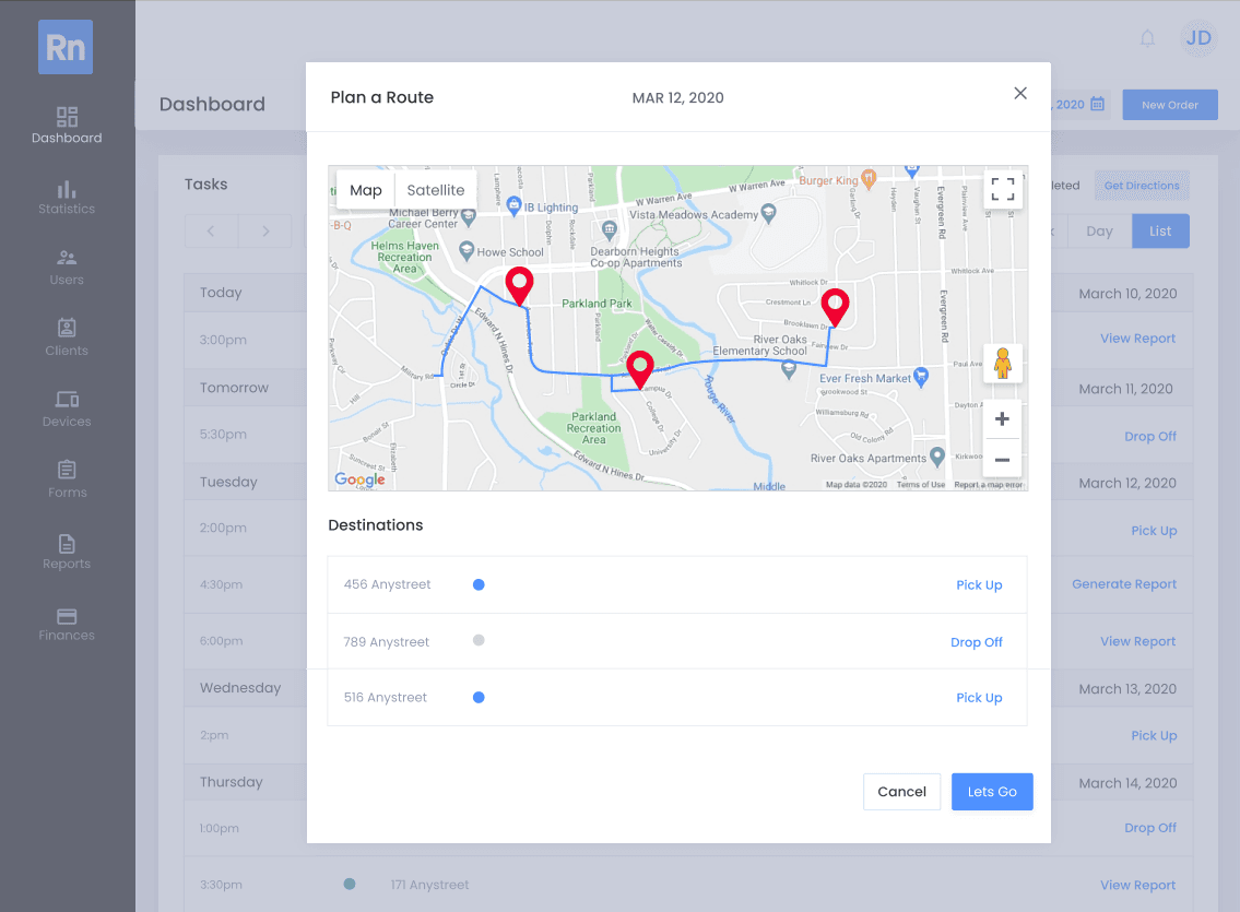 - Route planning and ETA notifications using Google Maps, including property geolocation and route optimization